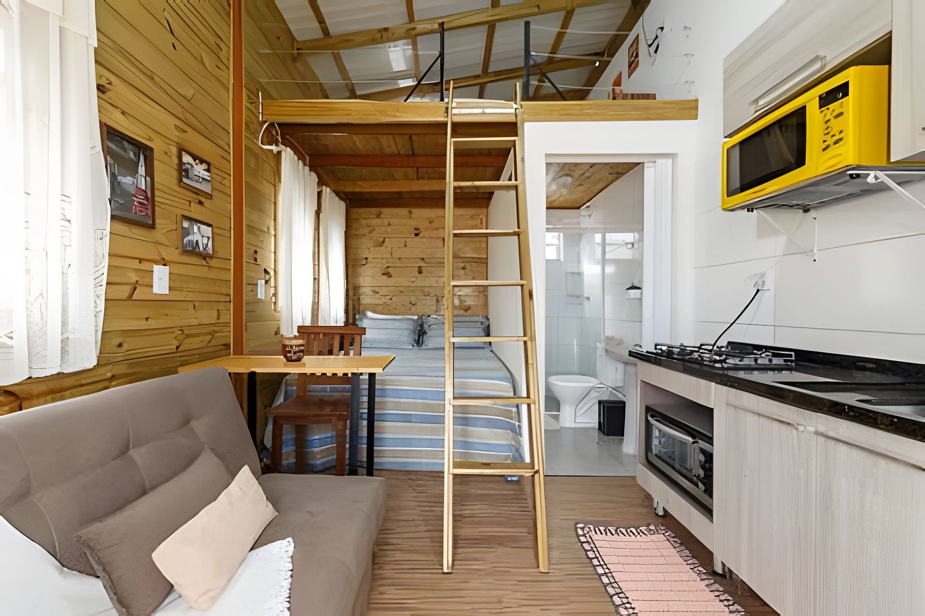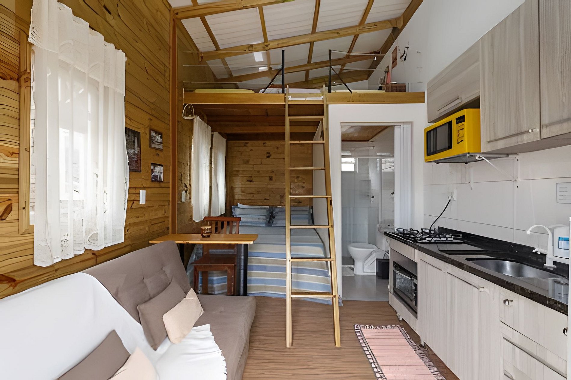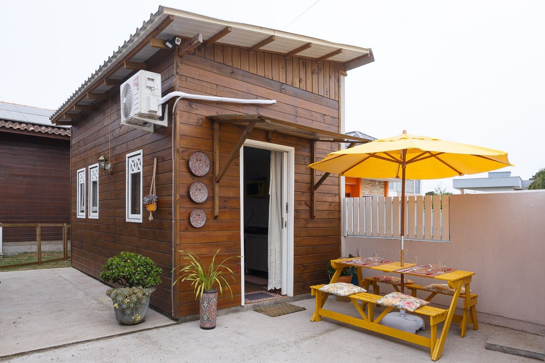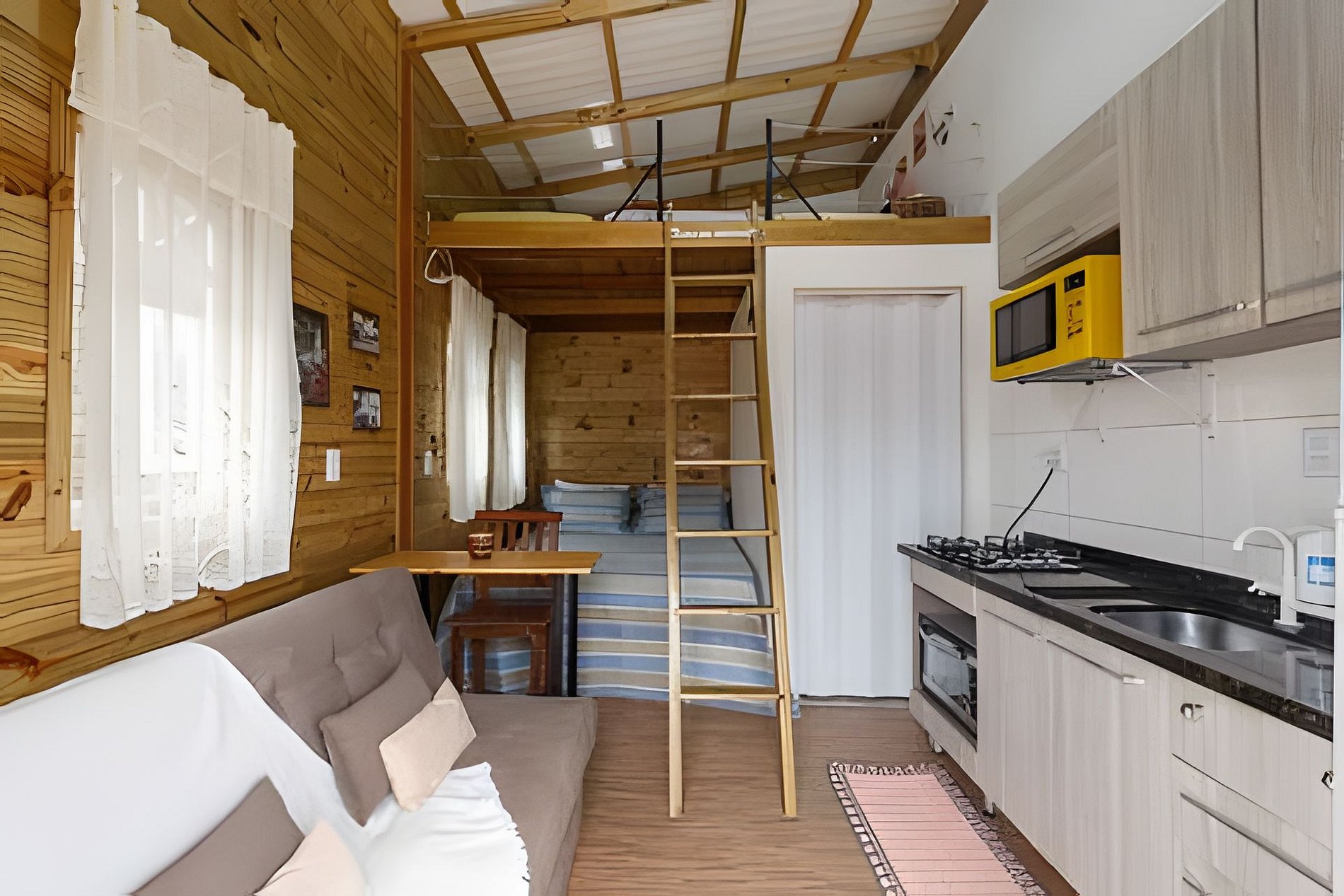 Casa aconchegante com espaço para até 6 pessoas, com cama queen, sofá cama e mezanino com colchão de casal. Cozinha completa, lavanderia e espaço externo com mesa e bancos. Excelente localização, vizinhança tranquila.