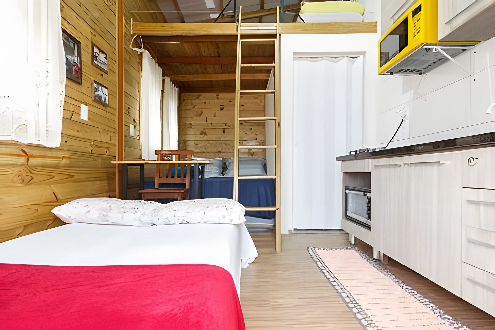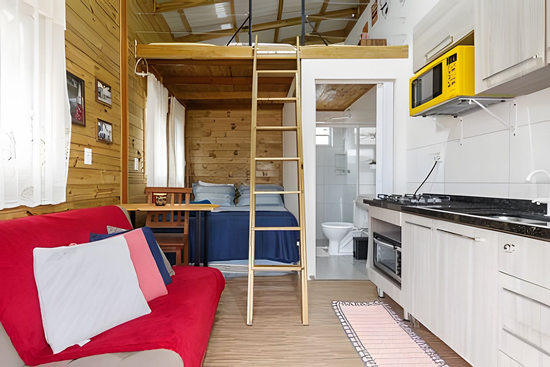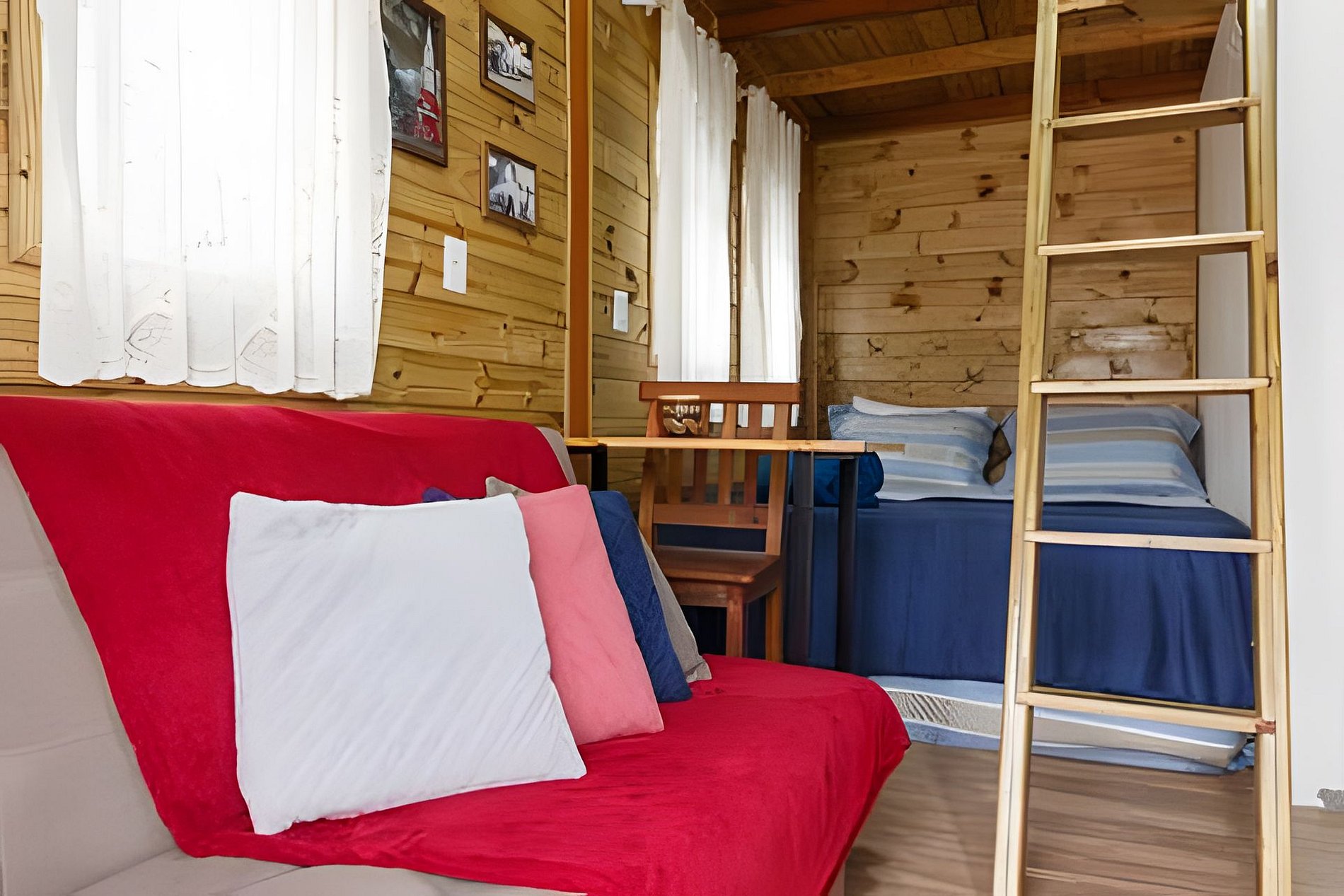 Casa aconchegante com espaço para até 6 pessoas, com cama queen, sofá cama e mezanino com colchão de casal. Cozinha completa, lavanderia e espaço externo com mesa e bancos. Excelente localização, vizinhança tranquila.