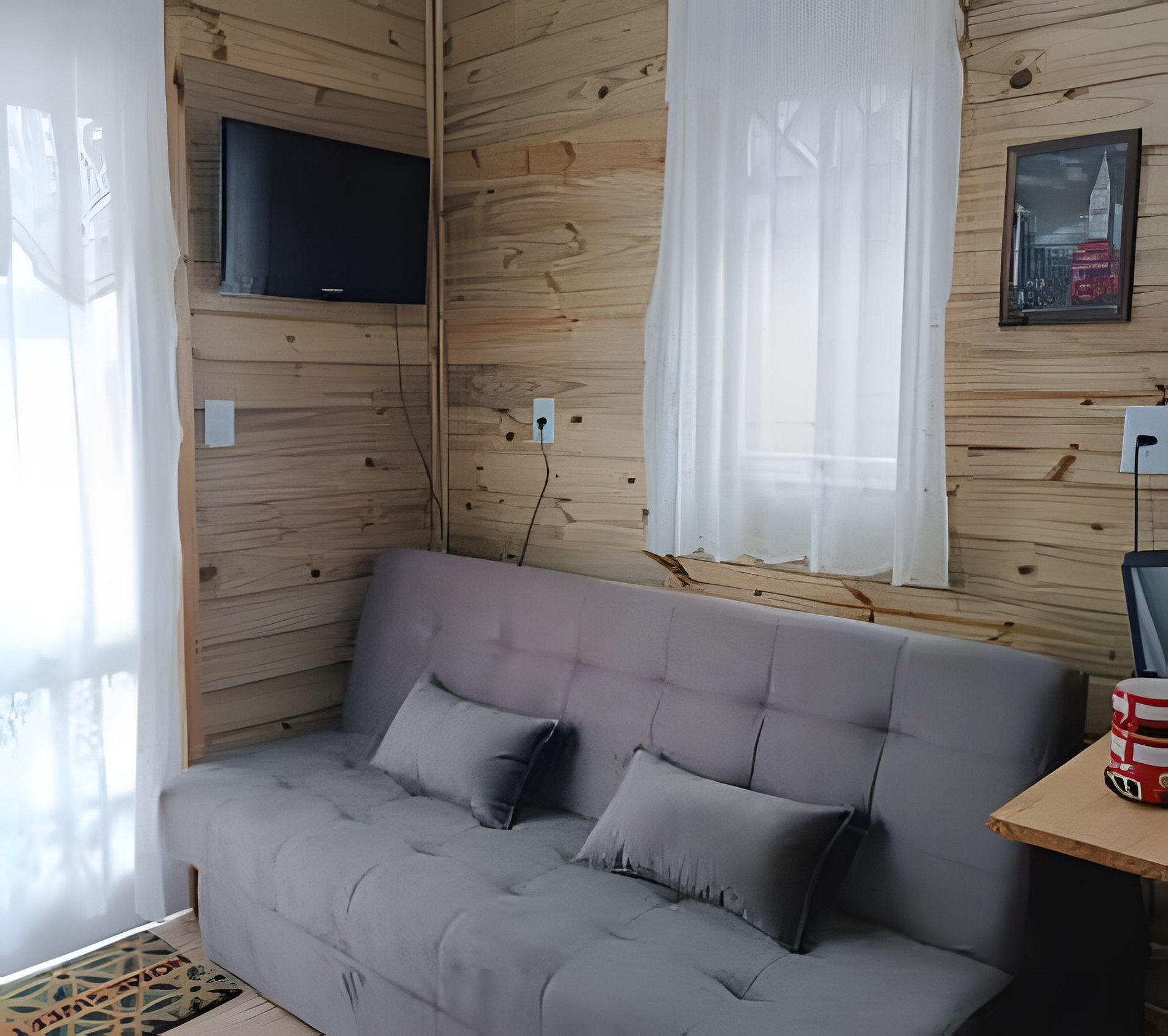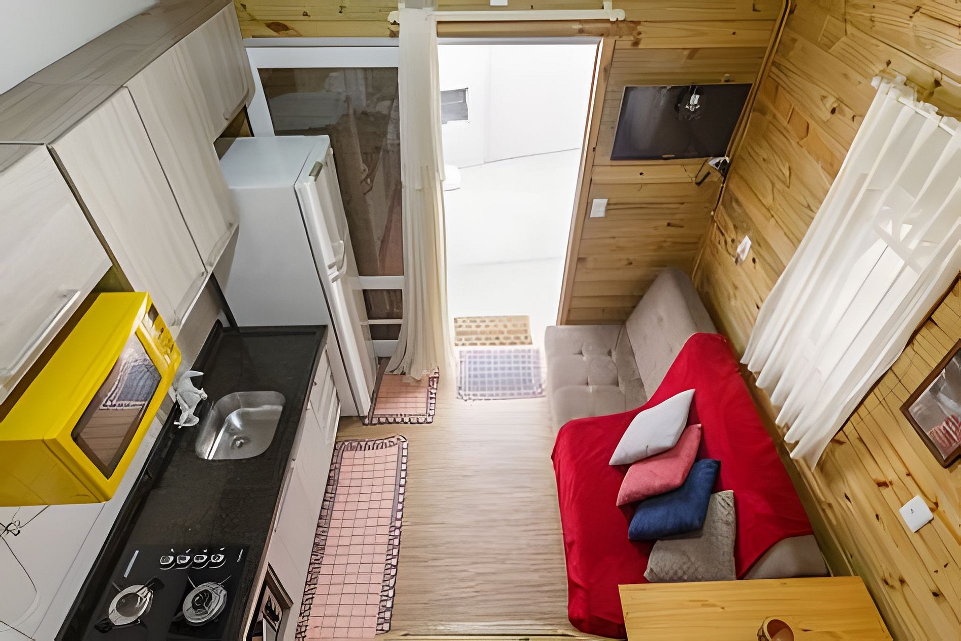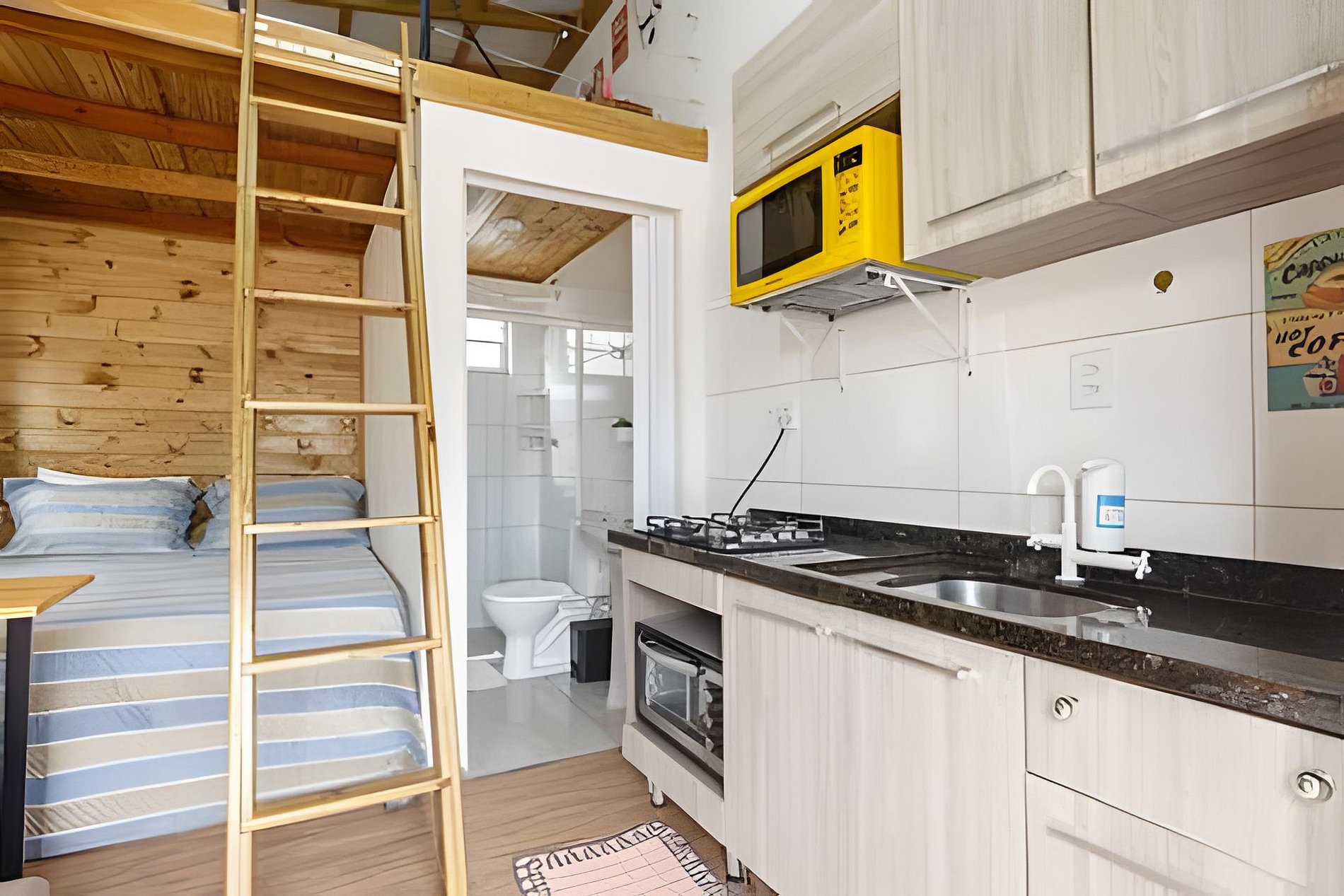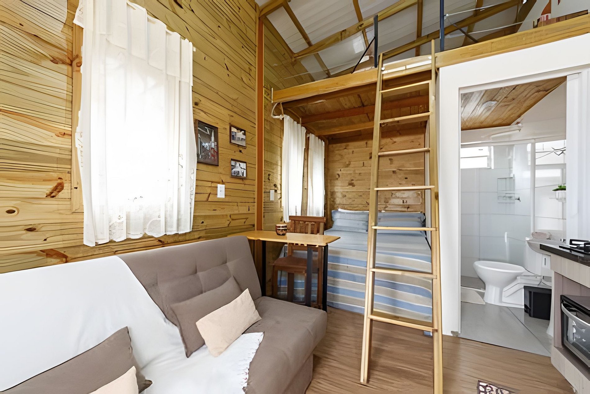 Casa aconchegante com espaço para até 6 pessoas, com cama queen, sofá cama e mezanino com colchão de casal. Cozinha completa, lavanderia e espaço externo com mesa e bancos. Excelente localização, vizinhança tranquila.